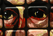 Technique: Lampworked mosaic glass (murrine) cane slice assemblage