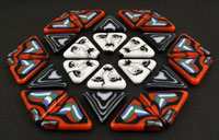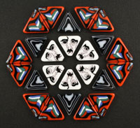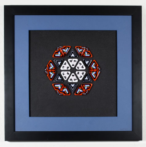 - Technique: Lampworked mosaic glass (murrine) cane slice assemblage
