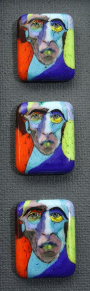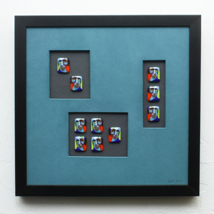Technique: Lampworked mosaic glass (murrine) cane slice assemblage Size: 12" x 12.5" x 1.5" (framed) Date: 2000 Signed & dated