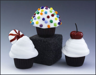 Our handcrafted glass cupcakes are signed and dated and each has a piece of soft felt affixed to the bottom so that there is no worry of scratching a favorite candy dish or elegant display. Each glass cupcakes is individually boxed in a white truffle box if a custom box is not specified. An enclosure card is included in every box.